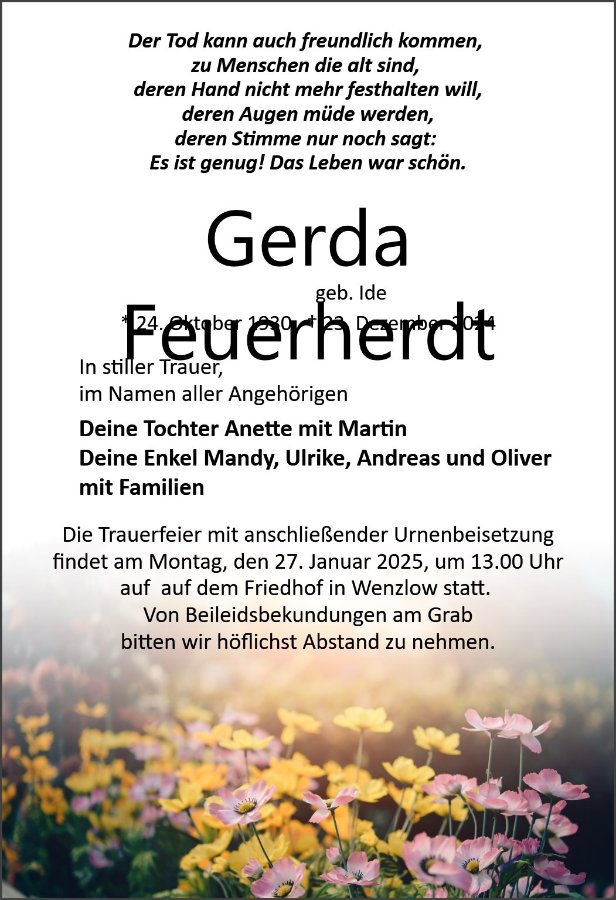 in dieser Zeit des Schmerzes wünschen wir Ihnen Kraft, den Verlust im Kreise Ihrer Liebsten zu verarbeiten. Als Zeichen unserer Anteilnahme und des Gedenkens entzünden wir dieses erste Licht. Möge diese Gedenkseite Ihnen helfen, Erinnerungen zu teilen und so das Andenken gemeinsam wachzuhalten.